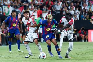 (250901) -- MADRID, 1 septiembre, 2025 (Xinhua) -- Imagen del 31 de agosto de 2025 de Lamine Yamal (2-d), de...