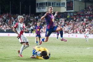 (250901) -- MADRID, 1 septiembre, 2025 (Xinhua) -- Imagen del 31 de agosto de 2025 de Robert Lewandowski (arriba), de...