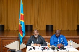 (250901) -- GOMA, 1 septiembre, 2025 (Xinhua) -- Corneille Nangaa (i), líder de la Alianza del Río Congo, grupo político-militar...