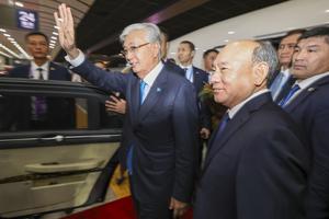 (250901) -- BEIJING, 1 septiembre, 2025 (Xinhua) -- El presidente kazajo, Kassym-Jomart Tokayev, llega a Beijing, capital de China, el...