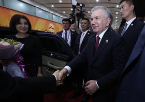 (250901) -- BEIJING, 1 septiembre, 2025 (Xinhua) -- El presidente uzbeko, Shavkat Mirziyoyev, llega a Beijing, capital de China, el...