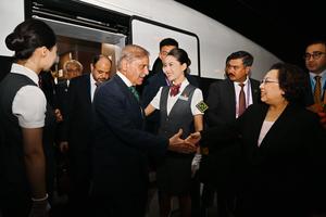 (250901) -- BEIJING, 1 septiembre, 2025 (Xinhua) -- El primer ministro paquistaní, Shehbaz Sharif, llega a Beijing, capital de China,...