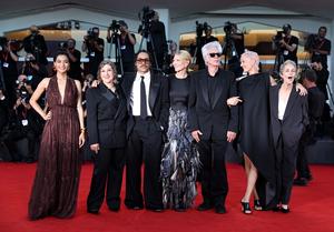(250901) -- VENECIA, 1 septiembre, 2025 (Xinhua) -- Imagen del 31 de agosto de 2025 del elenco principal de la...