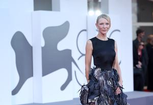 (250901) -- VENECIA, 1 septiembre, 2025 (Xinhua) -- Imagen del 31 de agosto de 2025 de Cate Blanchett, llegando a...