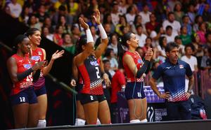 (250901) -- BANGKOK, 1 septiembre, 2025 (Xinhua) -- Imagen del 31 de agosto de 2025 de jugadoras de República Dominicana...