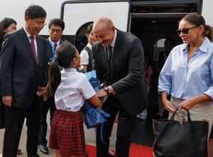 (250902) -- BEIJING, 2 septiembre, 2025 (Xinhua) -- El presidente azerbaiyano, Ilham Aliyev, llega a Beijing, capital de China, el...