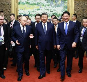 (250902) -- BEIJING, 2 septiembre, 2025 (Xinhua) -- El presidente chino, Xi Jinping, el presidente ruso, Vladímir Putin, y el...