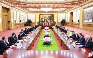 (250902) -- BEIJING, 2 septiembre, 2025 (Xinhua) -- El presidente chino, Xi Jinping, sostiene conversaciones con el presidente ruso, Vladímir...