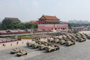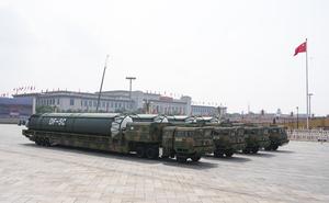 (250903) -- BEIJING, 3 septiembre, 2025 (Xinhua) -- La formación de misiles nucleares asiste a un desfile militar, en Beijing,...