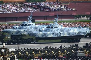 (250903) -- BEIJING, 3 septiembre, 2025 (Xinhua) -- La formación de guerra no tripulada basada en el mar asiste a...