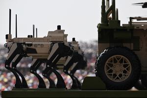 (250903) -- BEIJING, 3 septiembre, 2025 (Xinhua) -- La formación de guerra no tripulada con base terrestre asiste a un...