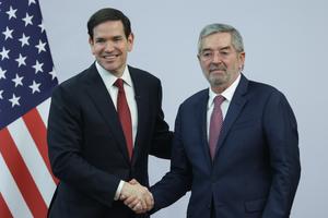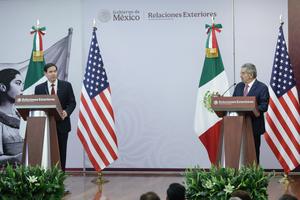 (250903) -- CIUDAD DE MEXICO, 3 septiembre, 2025 (Xinhua) -- El secretario de Estado estadounidense, Marco Rubio, reacciona durante una...