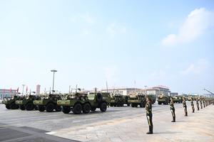 (250903) -- BEIJING, 3 septiembre, 2025 (Xinhua) -- La formación de guerra no tripulada terrestre asiste a un desfile militar,...