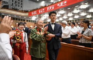 (250903) -- BEIJING, 3 septiembre, 2025 (Xinhua) -- Veteranos de guerra llegan entre cálidos aplausos antes de una gran gala...
