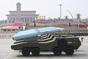 (250903) -- BEIJING, 3 septiembre, 2025 (Xinhua) -- La formación de misiles de crucero asiste a un desfile militar, en...