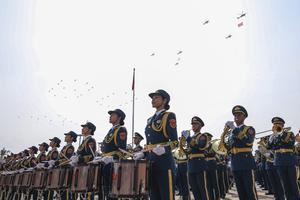(250903) -- BEIJING, 3 septiembre, 2025 (Xinhua) -- El escalón aéreo de guardia de la bandera es visto durante el...