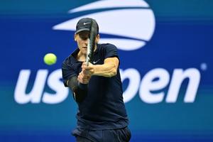 (250904) -- NUEVA YORK, 4 septiembre, 2025 (Xinhua) -- Imagen del 3 de septiembre de 2025 de Jannik Sinner devolviendo...