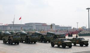 (250902) -- BEIJING, 2 septiembre, 2025 (Xinhua) -- La formación de misiles nucleares participa en un desfile, en Beijing, capital...
