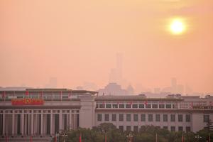 (250902) -- BEIJING, 2 septiembre, 2025 (Xinhua) -- Imagen del 3 de septiembre de 2025 del amanecer sobre Beijing, capital...