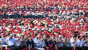 (250902) -- BEIJING, 2 septiembre, 2025 (Xinhua) -- Miembros de un coro realizan preparativos, en Beijing, capital de China, el...