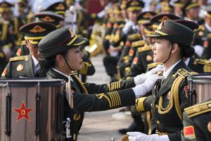 (250902) -- BEIJING, 2 septiembre, 2025 (Xinhua) -- Una banda militar conjunta del Ejército Popular de Liberación realiza preparativos, en...