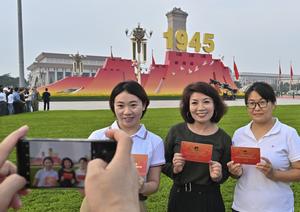 (250902) -- BEIJING, 2 septiembre, 2025 (Xinhua) -- Invitados posan para fotografías, en Beijing, capital de China, el 3 de...