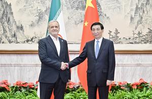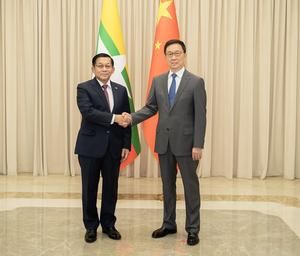 (250902) -- BEIJING, 2 septiembre, 2025 (Xinhua) -- El vicepresidente chino, Han Zheng, se reúne con el presidente interino de...