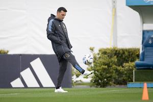(250902) -- EZEIZA, 2 septiembre, 2025 (Xinhua) -- El director técnico Lionel Scaloni, de la selección argentina de fútbol, controla...