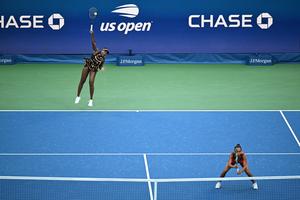 (250902) -- NUEVA YORK, 2 septiembre, 2025 (Xinhua) -- Imagen del 1 de septiembre de 2025 de Leylah Fernandez/Venus Williams...