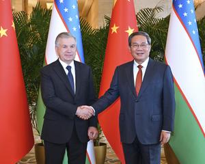 (250902) -- BEIJING, 2 septiembre, 2025 (Xinhua) -- El primer ministro chino, Li Qiang, se reúne con el presidente uzbeko,...