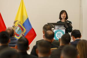 (250902) -- QUITO, 2 septiembre, 2025 (Xinhua) -- Imagen del 1 de septiembre del 2025 de la encargada de Negocios...