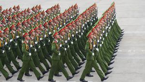 (250902) -- HANOI, 2 septiembre, 2025 (Xinhua) -- Soldados vietnamitas participan en un desfile militar con motivo del 80º aniversario...