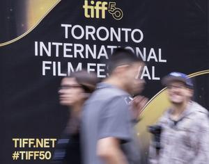 (250904) -- TORONTO, 4 septiembre, 2025 (Xinhua) -- Personas caminan frente a un cartel del Festival Internacional de Cine de...