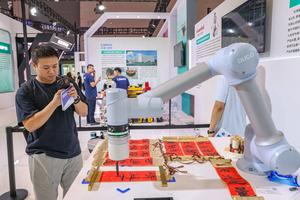 (250905) -- CHONGQING, 5 septiembre, 2025 (Xinhua) -- Un robot demuestra habilidades de caligrafía durante la Exposición Mundial de la...
