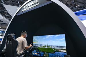 (250905) -- CHONGQING, 5 septiembre, 2025 (Xinhua) -- Un visitante prueba un simulador de vuelo durante la Exposición Mundial de...