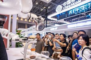 (250905) -- CHONGQING, 5 septiembre, 2025 (Xinhua) -- Un robot prepara café para los visitantes en la sede de la...