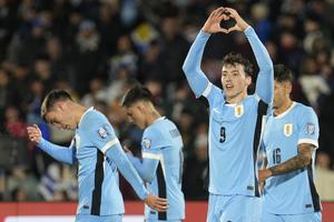 (250905) -- MONTEVIDEO, 5 septiembre, 2025 (Xinhua) -- Imagen del 4 de septiembre de 2025 del jugador Federico Viñas (frente),...