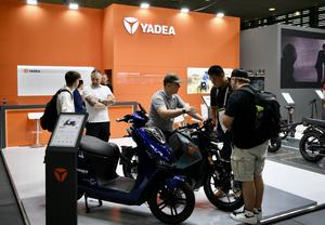 (250906) -- BERLIN, 6 septiembre, 2025 (Xinhua) -- Imagen del 5 de septiembre de 2025 de personas visitando el área de exposición de YADEA en la IFA Berlín 2025, en Berlín, Alemania. La IFA Berlín 2025, una de las ferias comerciales más grandes del mundo dedicada a la electrónica de consumo y los electrodomésticos, abrió el viernes, enfocándose en temas orientados al futuro como la tecnología de la información, la inteligencia artificial, el software y la potencia informática, así como soluciones sostenibles para el hogar, la movilidad y el estilo de vida. En la IFA de este año, las marcas chinas siguen estando a la vanguardia de la exposición. Grandes marcas como Haier, Hisense y TCL presentan sus últimas innovaciones en electrodomésticos con inteligencia artificial, pantallas inteligentes y soluciones de eficiencia energética. (Xinhua/Zhang Haofu) (oa) (da)