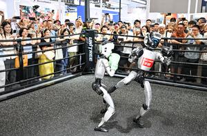 (250907) -- CHONGQING, 7 septiembre, 2025 (Xinhua) -- Imagen del 5 de septiembre de 2025 de visitantes observando un juego de boxeo de robots humanoides durante la Exposición Mundial de la Industria Inteligente 2025, en la municipalidad de Chongqing, en el suroeste de China. La Exposición Mundial de la Industria Inteligente 2025 comenzó el viernes en Chongqing, mostrando varios robots humanoides en el evento. (Xinhua/Wang Quanchao) (rtg) (ah)