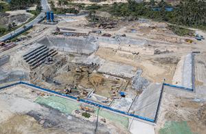 (250906) -- WENCHANG, 6 septiembre, 2025 (Xinhua) -- Vista aérea tomada con un dron el 5 de septiembre de 2025 del sitio de construcción de la plataforma de lanzamiento no. 3 de la segunda fase del sitio de lanzamiento de naves espaciales comerciales de Hainan, en Wenchang, en la provincia de Hainan, en el sur de China. Una vez completada, la segunda fase del sitio de lanzamiento de naves espaciales comerciales de Hainan mejorará las capacidades de lanzamiento integrales del centro, satisfará la creciente demanda de lanzamientos espaciales comerciales en China e impulsará los esfuerzos de Hainan por construir un clúster industrial innovador para el sector espacial comercial. (Xinhua/Pu Xiaoxu) (oa) (da)