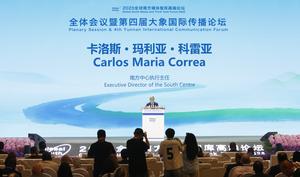 (250906) -- KUNMING, 6 septiembre, 2025 (Xinhua) -- Carlos María Correa, director ejecutivo del Centro Sur, habla durante el 4 Foro Internacional de Comunicación de Yunnan, en Kunming, en la provincia de Yunnan, en el suroeste de China, el 6 de septiembre de 2025. El Foro de Medios de Comunicación y Think Tanks del Sur Global 2025, inaugurado el sábado, está organizado conjuntamente por la Agencia de Noticias Xinhua, el comité provincial del Partido Comunista de China en Yunnan y el Gobierno popular de la provincia de Yunnan. La sesión plenaria del foro y del 4 Foro Internacional de Comunicación de Yunnan se llevó a cabo aquí el sábado. (Xinhua/Chen Wei) (jg) (da)