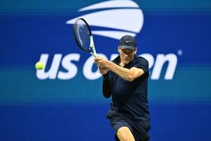 (250906) -- NUEVA YORK, 6 septiembre, 2025 (Xinhua) -- Imagen del 5 de septiembre de 2025 de Jannik Sinner devolviendo la pelota durante el partido de semifinal de individuales masculinos entre Jannik Sinner, de Italia, y Felix Auger-Aliassime, de Canadá, en el campeonato de tenis US Open 2025, en Nueva York, Estados Unidos. (Xinhua/Li Rui) (rtg) (da)