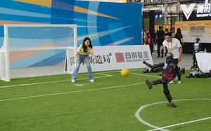 (250910) -- BEIJING, 10 septiembre, 2025 (Xinhua) -- Una visitante juega fútbol con un robot durante la Feria Internacional de Comercio de Servicios de China (CIFTIS, por sus siglas en inglés) 2025, en Beijing, capital de China, el 10 de septiembre de 2025. La CIFTIS 2025, abrió sus puertas el miércoles en Beijing, bajo el tema "Abrazar tecnologías inteligentes, impulsar el comercio de servicios". (Xinhua/Ding He) (ah) (ra) (ce)