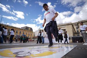 (250909) -- BOGOTA, 9 septiembre, 2025 (Xinhua) -- Un hombre participa en un evento en el marco de la conmemoración...