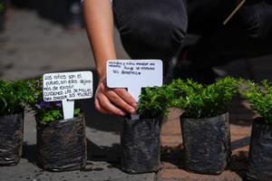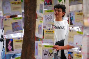 (250909) -- BOGOTA, 9 septiembre, 2025 (Xinhua) -- Una persona coloca un mensaje alusivo a la niñez junto a una...