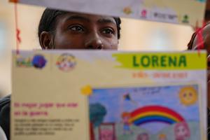 (250909) -- BOGOTA, 9 septiembre, 2025 (Xinhua) -- Una mujer observa una instalación artística durante un evento en el marco...