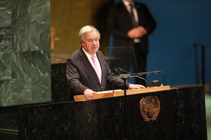 (250909) -- NACIONES UNIDAS, 9 septiembre, 2025 (Xinhua) -- El secretario general de la ONU, António Guterres, habla en la...