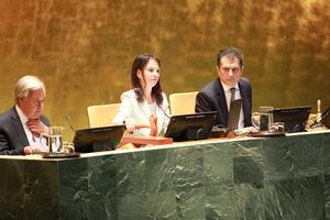 (250909) -- NACIONES UNIDAS, 9 septiembre, 2025 (Xinhua) -- Annalena Baerbock (c), presidenta de 80° período de sesiones de la...