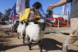 (250909) -- MONTEVIDEO, 9 septiembre, 2025 (Xinhua) -- Un hombre lleva sus ovejas a un corral durante la edición 120...