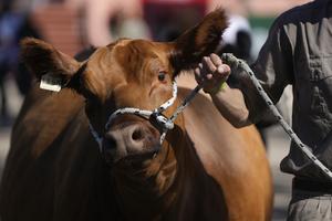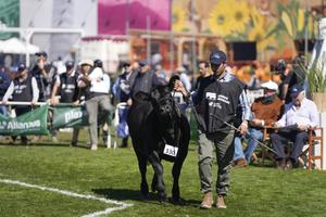 (250909) -- MONTEVIDEO, 9 septiembre, 2025 (Xinhua) -- Un vacuno es presentado a los jueces durante la edición 120 de...